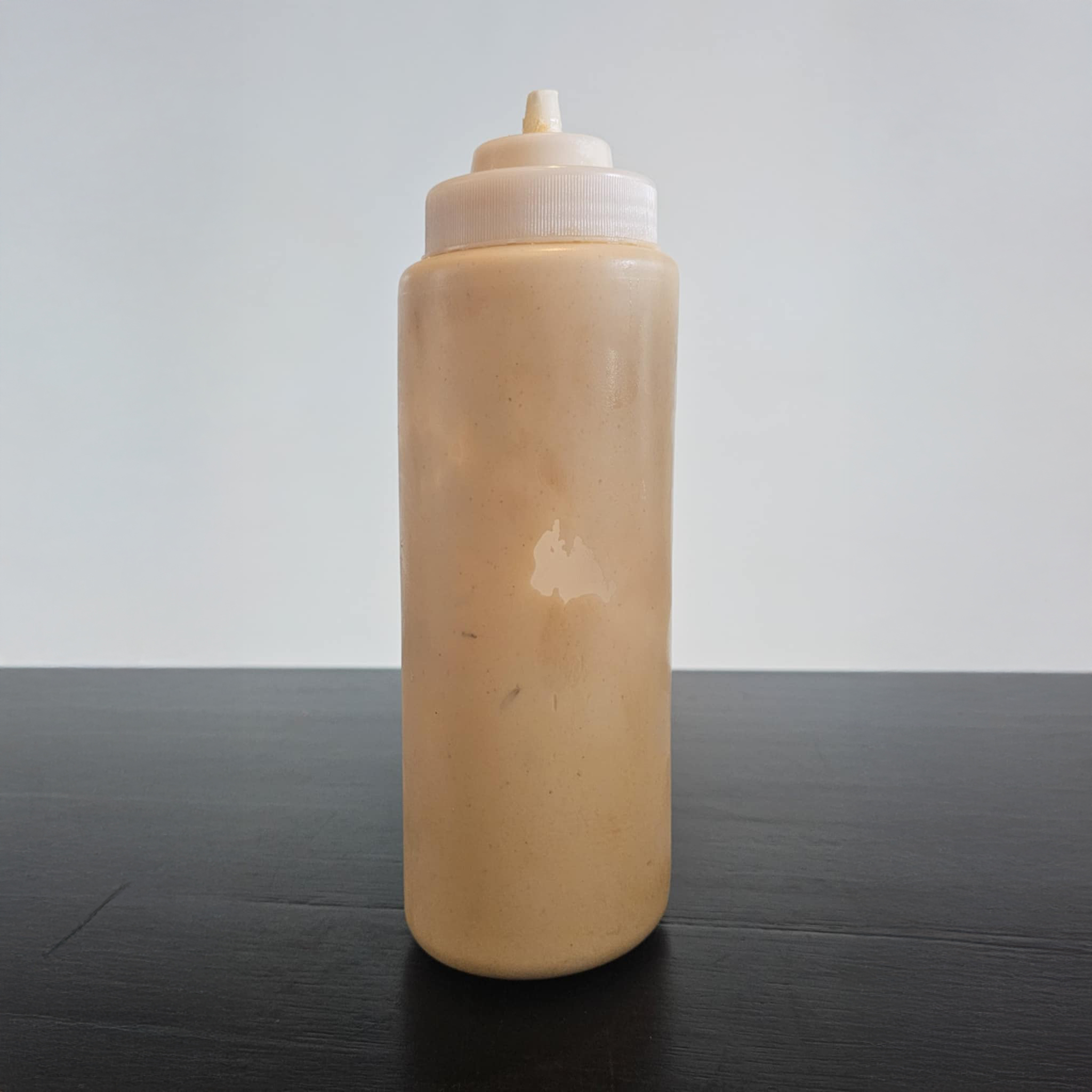 - Blend olie, kikærtevand og peberod til du har en tyk mayo. Tilsæt mere olie, hvis den er for tynd, så tykner den.